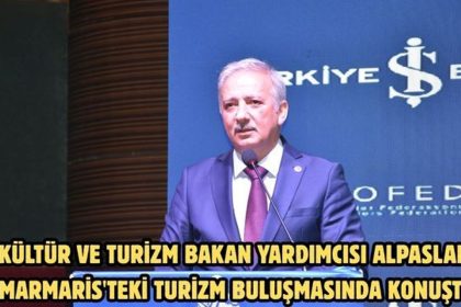 Alpaslan, Muğla’nın Marmaris ilçesinde Güney Ege Turistik Otelciler ve İşletmeciler Birliğince (GETOB) bir otelde düzenlenen “Uluslararası 2. Karya Vizyon Turizm Buluşması” toplantıs...
