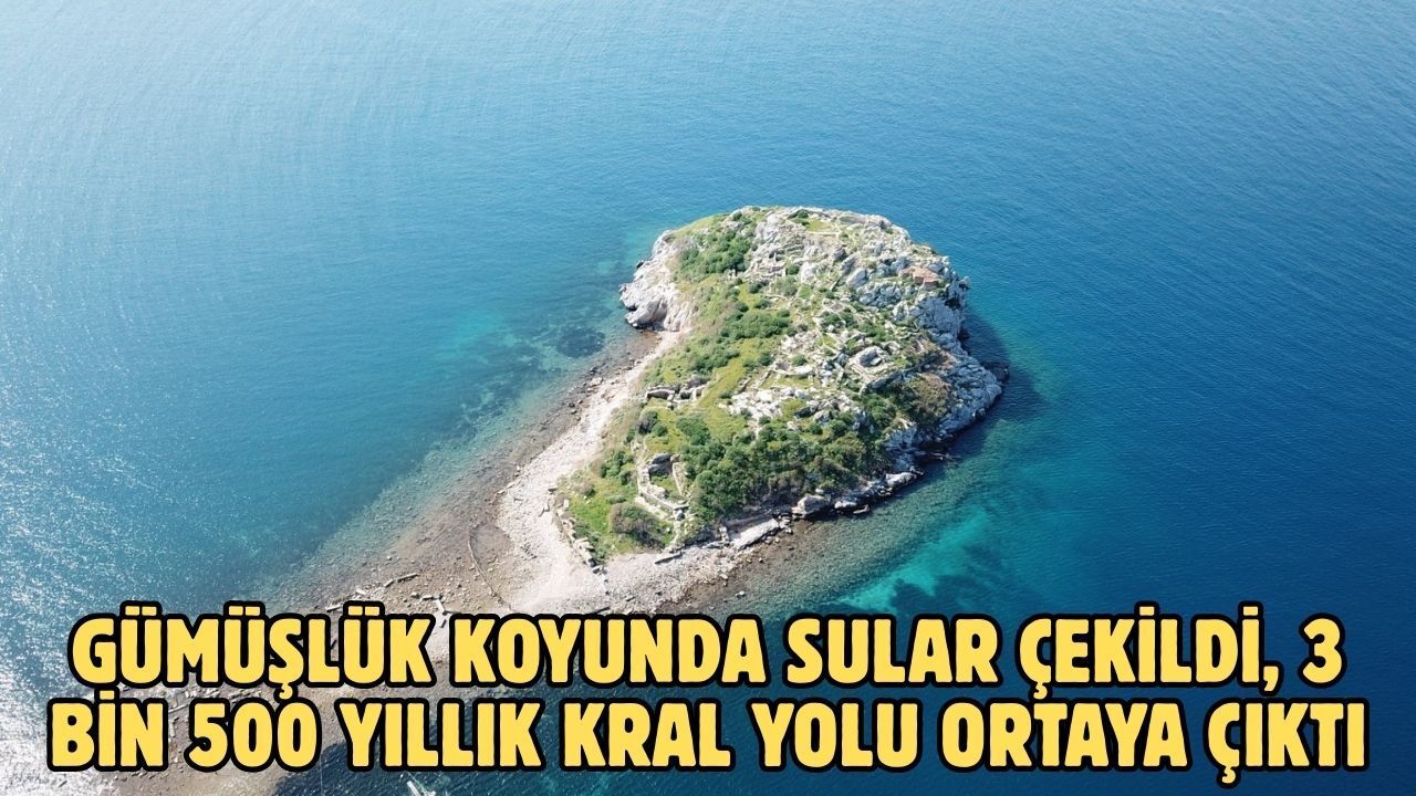 Gümüşlük koyunda suların geri çekilmesiyle, antik Mydos kentine uzanan yaklaşık 3 bin 500 yıllık kral yolu yeniden ortaya çıktı.