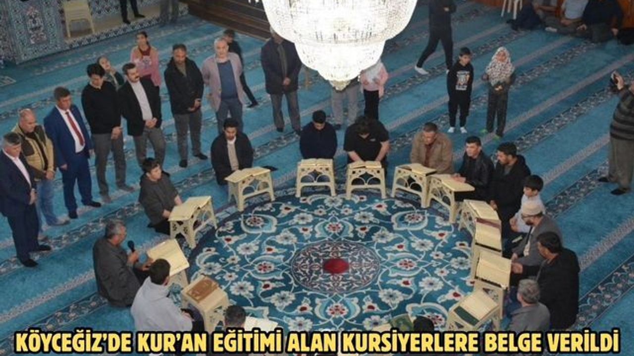 Ramazan ayının son günlerinde, Toparlar Merkez Camii’nde sekizincisi tamamlanan ‘Camilerde Kur’an Eğitimi’ kursunun belge töreni coşkulu bir şekilde icra edildi. Köyceğiz Kaymakamı Mert Kumcu, Toparlar Camii’nde Teravih namazı sonrasında; Diyanet İşleri Başkanlığı’nın Camilerde Kuran’ı Kerim Eğitimi programı kapsamında, 4 ay boyunca yatsı namazından sonra camilerde devam eden Kuran’ı Kerim okuma eğitimlerini tamamlayan kursiyerlere belge verme törenine katıldı. Kaymakam Kumcu, kurs öğreticisi İmam-Hatip Murat Yaşar ile kursiyerleri tebrik ederek, başarılar diledi. Belge törenine; Köyceğiz İlçe Müftüsü Ahmet Karagöz, Köyceğiz İlçe Milli Eğitim Müdürü Taner Şen, Sosyal Yardımlaşma ve Dayanışma Vakfı Müdürü Ercan Ceylan, Toparlar Mahallesi Muhtarı Bilal Törüz, Okul Müdürleri, öğrenciler ve vatandaşlar iştirak etti.